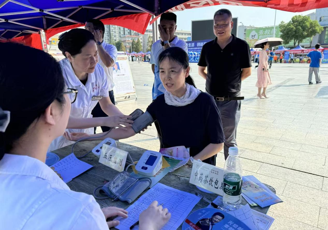 市衛(wèi)健委的展位前,免費測量血壓、血糖的服務臺前排起了長龍。專家們細致地為市民提供健康咨詢和初步診斷。