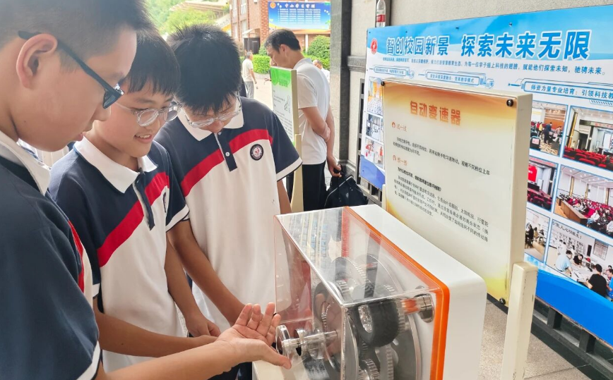 鐵山第一中學(xué)活動(dòng)區(qū)內(nèi),四地科普大篷車車載展品擺放整齊,形成科普方陣,吸引同學(xué)們爭(zhēng)相體驗(yàn)。其中很多展品展示了同學(xué)們正在學(xué)習(xí)的光學(xué)、力學(xué)、電磁學(xué)等物理學(xué)科知識(shí)!疤禊Z絨觸覺(jué)”“雙曲狹縫”“爸爸的鼻子”“錐體上滾”“窺視無(wú)窮”“最速降線”等經(jīng)典互動(dòng)展品,將抽象概念轉(zhuǎn)化為可觸摸、可操作的實(shí)體體驗(yàn),讓同學(xué)們玩中長(zhǎng)知識(shí),學(xué)中有樂(lè)趣。