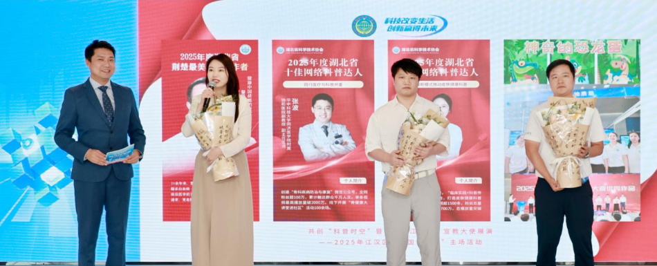 活動(dòng)還對(duì)一批先進(jìn)典型進(jìn)行表彰。北湖街道建設(shè)社區(qū)李鐘、德芭與彩虹書(shū)店曾剛、湖北地質(zhì)博物館劉鴻飛、武漢賽孚城應(yīng)急安全培訓(xùn)中心李陽(yáng)、比亞迪全品牌銷售中心曹紹勇等獲評(píng)首屆“江小科”宣教大使;萬(wàn)松街道機(jī)場(chǎng)社區(qū)、新華街道精武社區(qū)、武漢精益眼鏡有限公司、智慧武漢5G創(chuàng)新港科普教育基地、武漢市江漢區(qū)紅領(lǐng)巾學(xué)校榮獲“江小科”宣教團(tuán)隊(duì)稱號(hào);曾剛、楊盛力、劉漢生、黃瑋等被推選為“江漢區(qū)網(wǎng)絡(luò)科普達(dá)人”;何喆瑞、佘奕杉、沈則宏、王在等被授予“江小科形象大使”榮譽(yù)稱號(hào)。