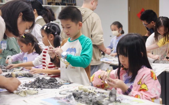 在“巖石奇遇記”環(huán)節(jié),孩子們通過(guò)故事了解火成巖、沉積巖和變質(zhì)巖的形成與分類,并親手完成巖石彩繪創(chuàng)作,把地質(zhì)知識(shí)與藝術(shù)創(chuàng)造相結(jié)合!盎诫U(xiǎn)家”環(huán)節(jié)則帶領(lǐng)他們親手挖掘仿真恐龍骨架,觀察真實(shí)化石標(biāo)本,學(xué)習(xí)生物遺跡的形成與分類。最受歡迎的“礦石小獵人”環(huán)節(jié)通過(guò)導(dǎo)電實(shí)驗(yàn)和寶石盲盒,讓孩子們直觀感受礦石的物理特性與實(shí)用價(jià)值,激發(fā)他們對(duì)資源科學(xué)與自然保護(hù)的初步認(rèn)識(shí)。
