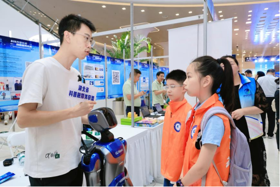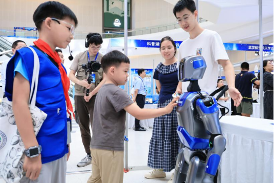 在2025年湖北省暨武漢市全國(guó)科普月活動(dòng)啟動(dòng)儀式現(xiàn)場(chǎng),孩子們或駐足圍觀無人機(jī),或圍在機(jī)器人旁好奇互動(dòng),一張張笑臉上滿是對(duì)科學(xué)的向往。
