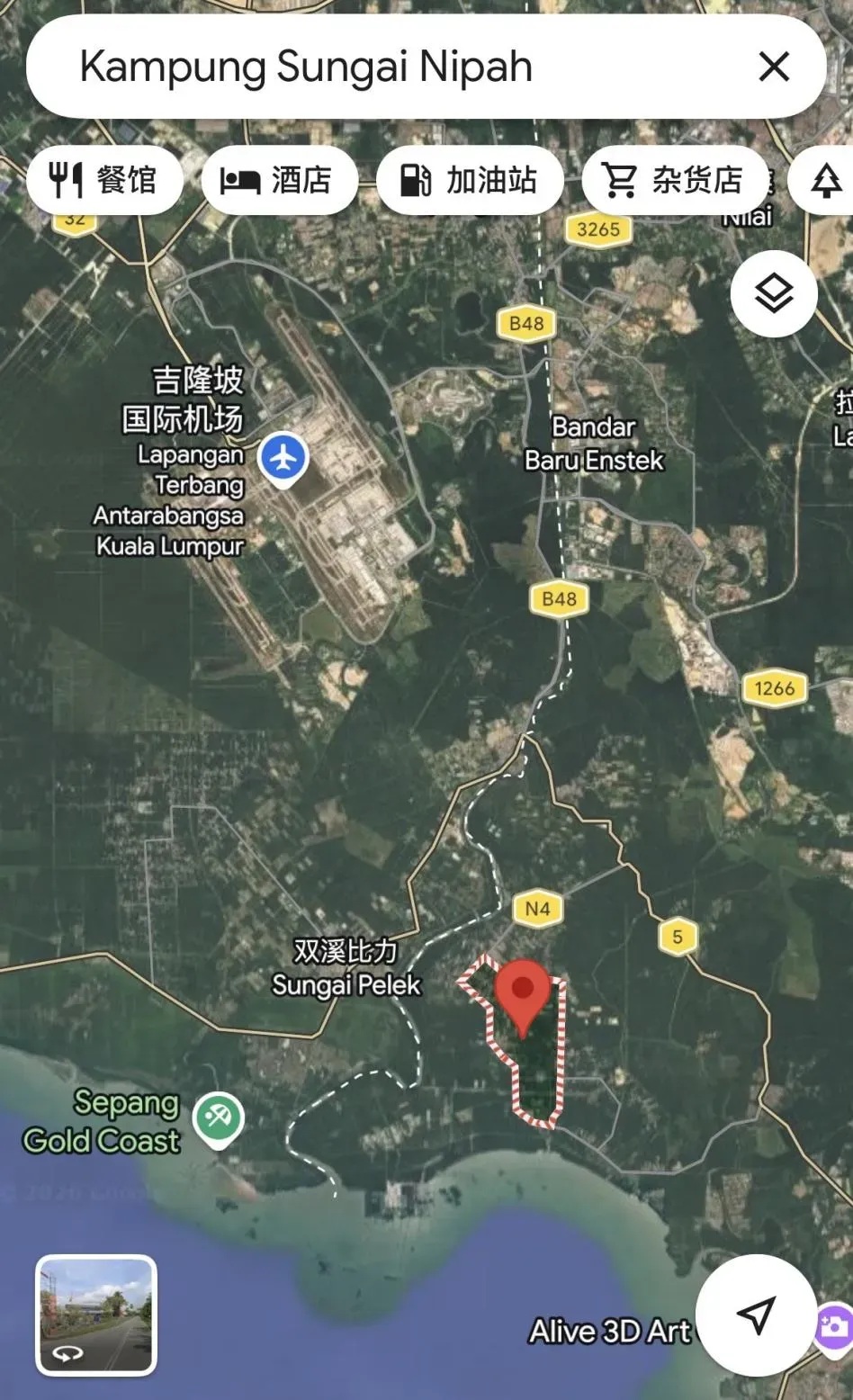 雙溪立百新村的位置,離吉隆坡國際機場很近。