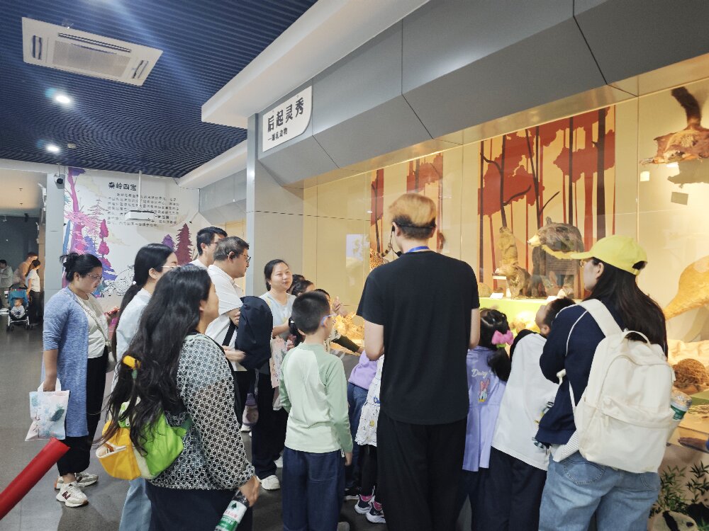 在博物館聽取講解員講解動物標本的故事(通訊員 尹子晨 攝)