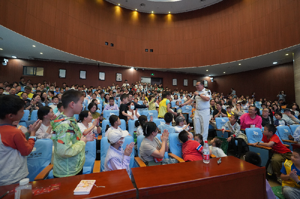 在互動環(huán)節(jié),付教授用“海上巨無霸”“海天雄鷹”“海岸堡壘”等生動形象的比喻,深入淺出地介紹了海軍五大兵種的趣味知識,將“向海圖強(qiáng)”的夢想種子和“愛我海疆、護(hù)我中華”的愛國信念深深植入孩子們的心田;迎h(huán)節(jié)氣氛熱烈,小讀者們爭相提問,從“潛艇如何在海底呼吸”到“未來海戰(zhàn)的發(fā)展趨勢”,付教授都耐心地一一解答,并鼓勵孩子們好好學(xué)習(xí)科學(xué)知識,將來為祖國的海洋強(qiáng)國事業(yè)貢獻(xiàn)力量。