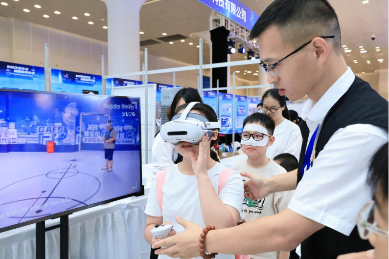 除此之外,我的宇宙(深圳)科技有限公司展臺(tái)前,排起了長(zhǎng)長(zhǎng)的隊(duì)伍,小朋友們爭(zhēng)先恐后地進(jìn)行VR體驗(yàn),感受虛擬與現(xiàn)實(shí)的碰撞樂趣。
